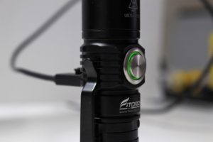 As long as you’re using a rechargeable battery you can utilize internal charging. Connect the included micro cable to the port on the side of the light, and you’re on your way. Once connected, the switch indicator will blink green. It’ll turn solid green when the charge is complete.