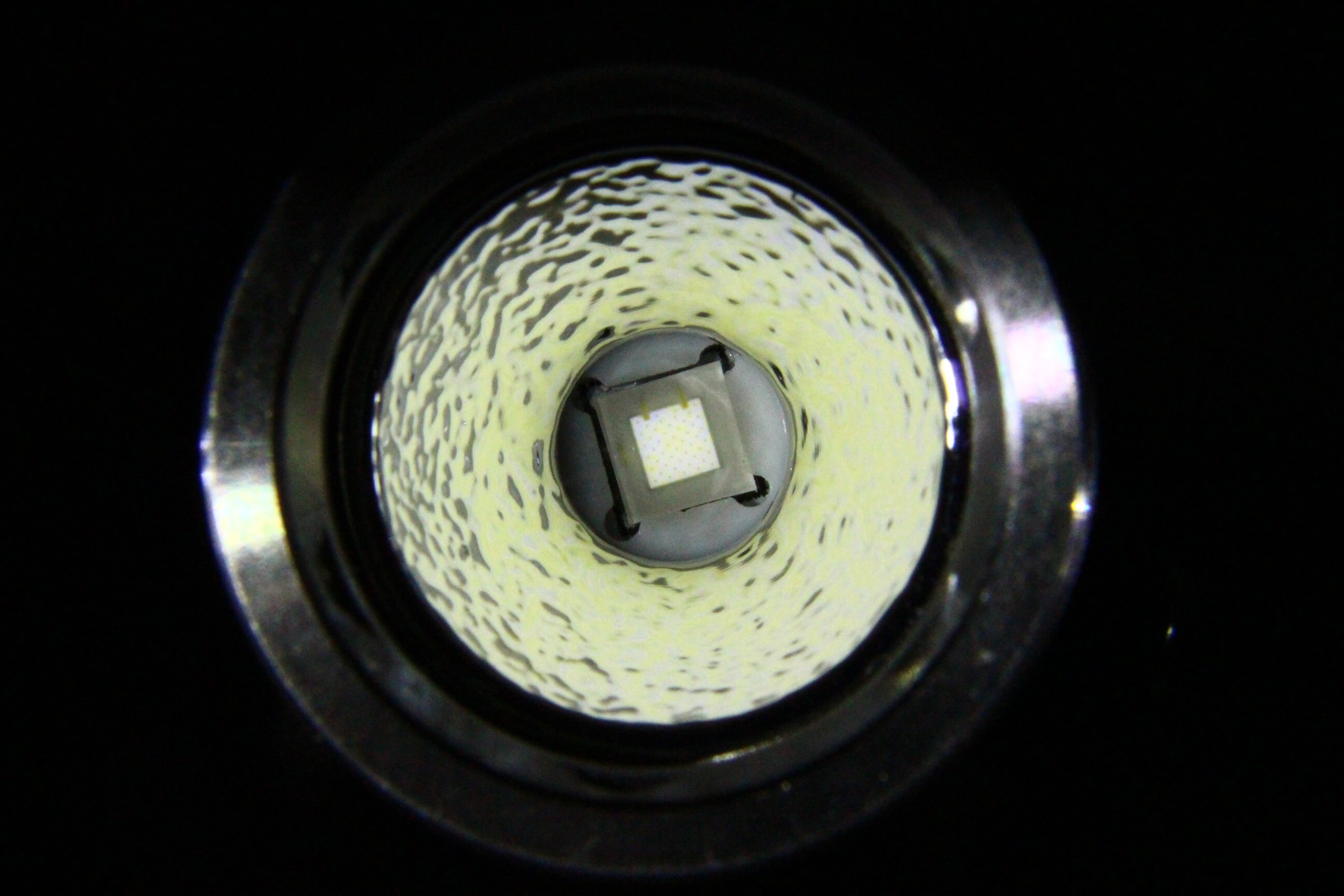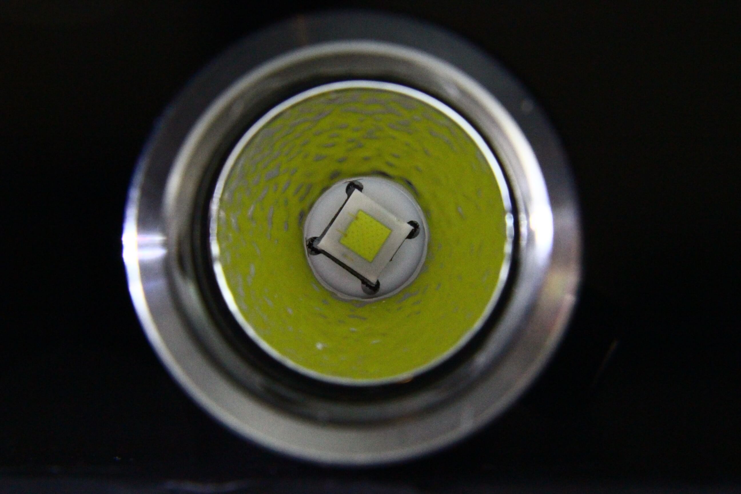 The Cree XP-L HI LED produces a beautiful beam with just the right ratio of spot vs. throw. The beam is a very nice white, with no off-color tints.