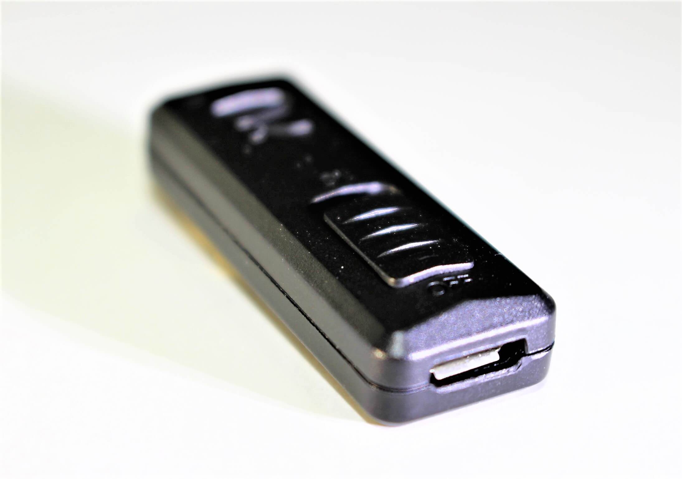 You have this small thingy with a USB port on the end, and an on/off switch on the body. It has a magnetic button on it which attaches to the corresponding side-button on the flashlight. Then, when the USB cable is attached to a USB source, it charges the 18650 battery that’s inside the light. You’ll know it’s charging by looking AT the magentic connection. The flashlight indicator will be red. You’ll know it’s finished when the indicator turns green. But… it doesn’t end there. The magnetic charger is also a key-chain light! The on/off switch enables a nice ‘warm-white’ diffused beam of just a few lumens, which is good enough to see your keys (or whatever) in the dark.