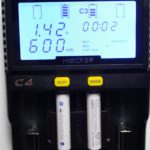 Note: The manual suggests which current option to use when the capacity of the intended battery is above or below a certain threshold. For lithium, it’s 1200mAh. For NiMH, it’s 500mAh. So for lithium, they say to use “low” if the capacity of the cell is less than 1200, which includes such popular sizes as 14500 and 16340. I’ve never seen an NiMH battery that’s below 500mAh, therefore “high” would always be fine. The odd thing here (and quite contradictory), is when I insert a 16340 (of 700mAh) the C4 defaults to “high” current!!!