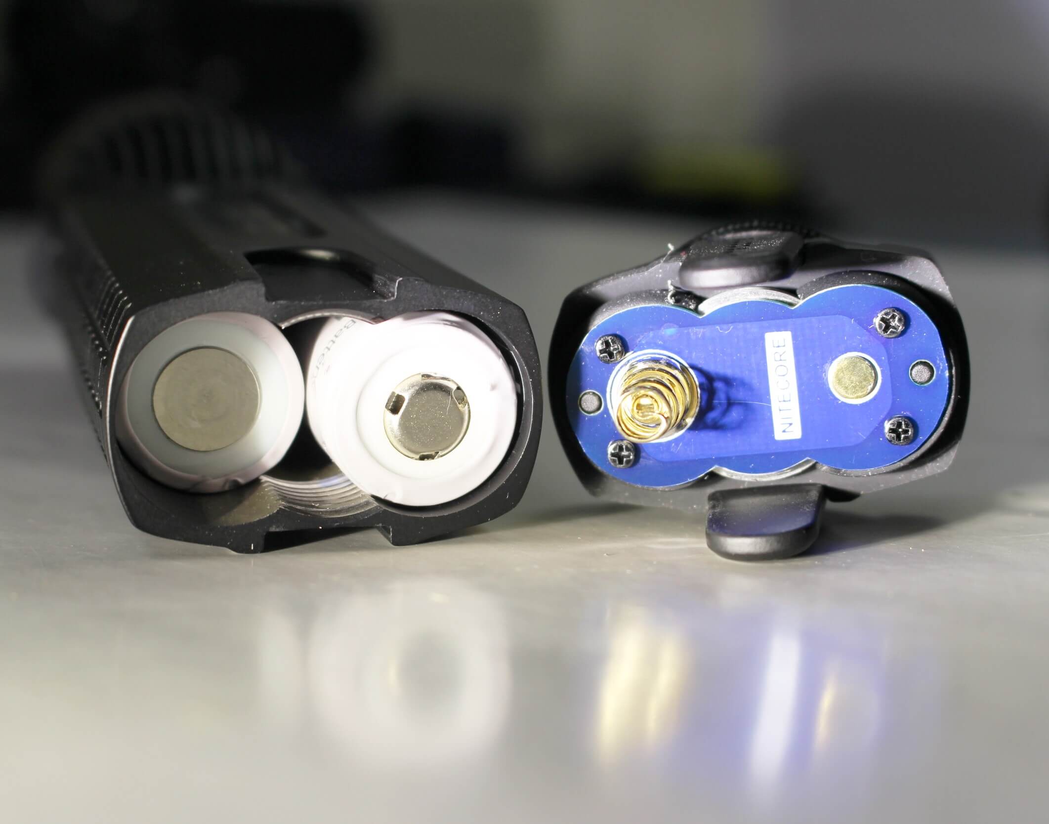Speaking of batteries, which is a slight departure for Nitecore…it uses TWO 3.7v rechargeable 18650’s, or FOUR disposable CR123’s or 3.7v 16340’s. And because Nitecore is a quality company, when their product requires more than one battery, they utilize a safe configuration. This means the cells go in side by side*, not head-to head which is potentially unsafe when using cheap, or unprotected batteries.