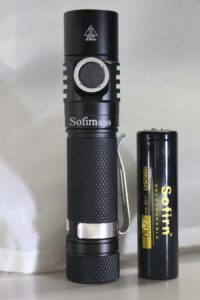 The Sofirn SC31B comes equipped with its own 18650 battery. Due to its limited working voltage, this is the ONLY (type of) battery it will accept. DO NOT attempt to operate it with disposable CR123, or (rechargeable) 16340 batteries!!! With a spring at each end of the tube, accepting either button-top or flat-top 18650’s is not a problem.