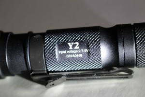 The Y2 is a simple to operate flashlight. It’s 4.86″ (123.5 mm) long (without the head extended) and weighs about 1.35 grams with an 18650 battery installed.
