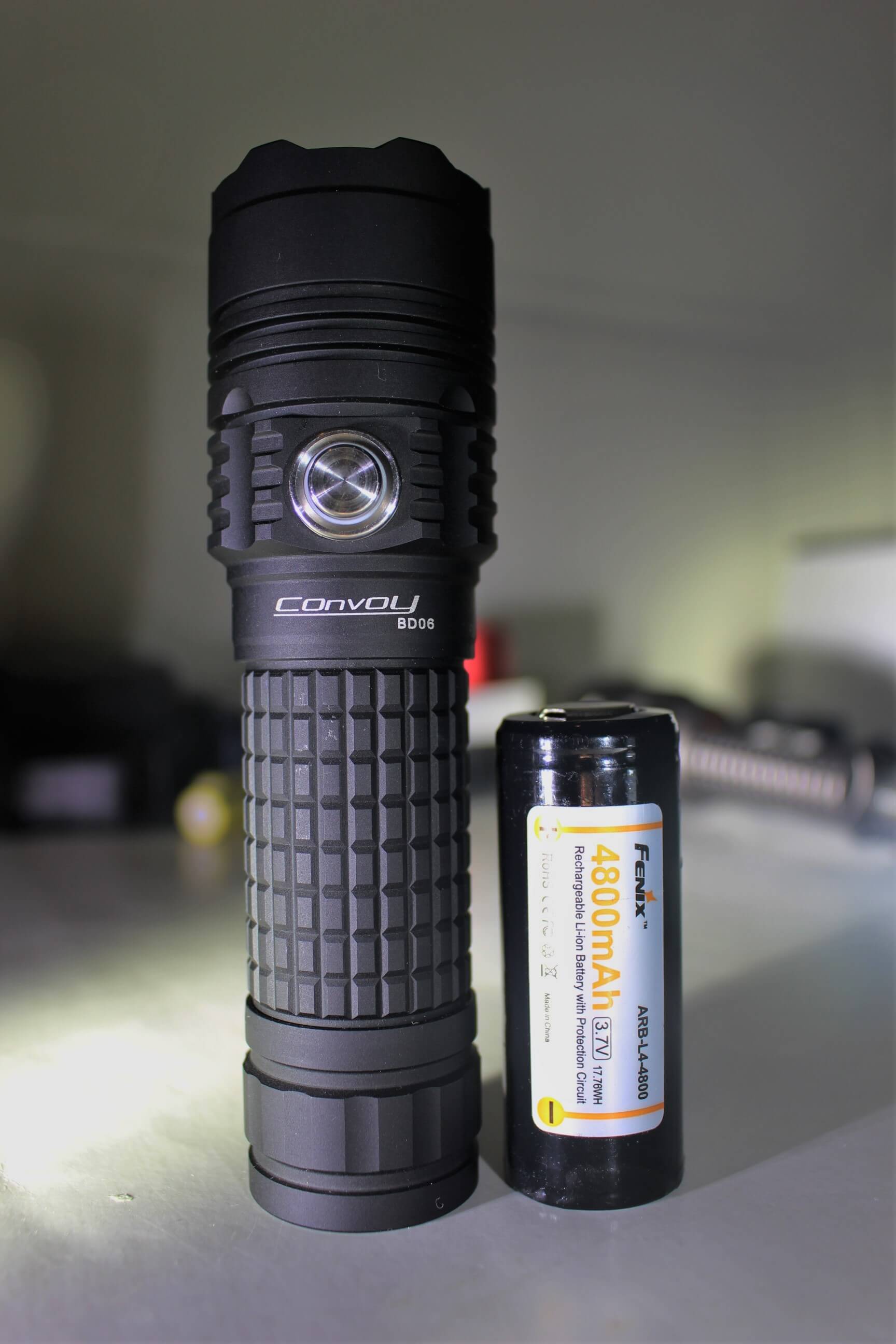As far as the two batteries are concerned, there won’t be any difference in output, BUT, runtime would be substantially higher with a 26650. This is due to the higher average capacity that a 26650 can offer. Convoy has not supplied any runtime tests on the light, and I’ve not done any myself either. From experience, I would expect a fully charged 26650 to power the BD06 on high mode for about 2.5 to 3 hours.