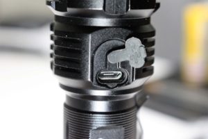 First things first. My package came equipped with a FiTorch 3400mAh 18650 battery. Whereas this is the recommended power source (and the only way of using the internal charging) you can also use disposable CR123 batteries. According to the M30R manual, its working voltage is only good to 6 volts! This would restrict the use of other rechargeable battery types… such as 16340 and 18350. The accompanying battery includes a USB port, which makes two charging methods possible.. either outside, or inside the light!