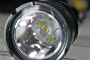 The XP-L LED and smooth reflector provide a well focused beam, with a sharply defined center and ample spill. Mode separation is quite good, and with a lithium battery, there’s a clear jump in output between “high” and “turbo”.