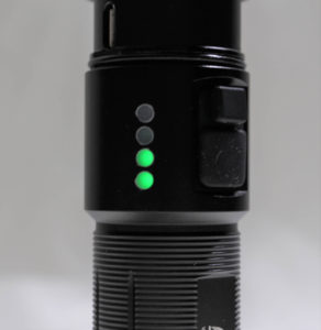 Each time the FiTorch MR15 is switched on, the indicators show battery power for a few seconds. You can check battery power in other ways as well. When the light is on, press & hold the mode switch. You’ll not only get tactical strobe, but the indicators will illuminate battery power. Here’s what they mean;