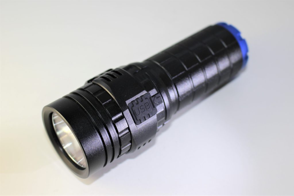 The LED is a CREE XHP35, “high intensity” which focuses the beam into a long-throwing cone of light. Beam distance is rated at 596 meters! That’s 651 yards!!
