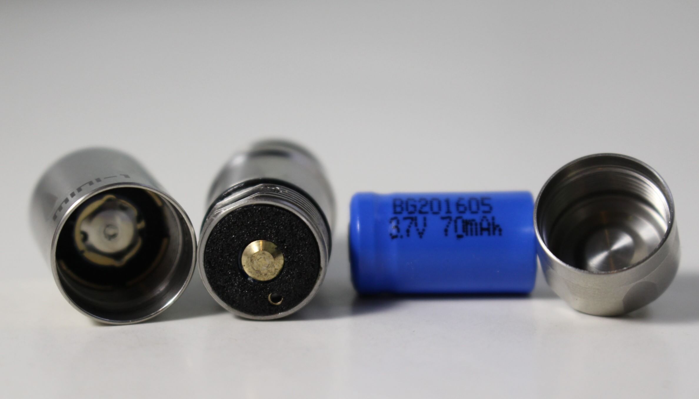 As you can see from the photo above, the flashlight disassembles into three sections. To insert the battery it’s really only necessary to remove ONE of them.