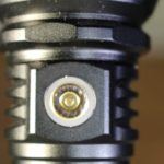 You have this small thingy with a USB port on the end, and an on/off switch on the body. It has a magnetic button on it which attaches to the corresponding side-button on the flashlight. Then, when the USB cable is attached to a USB source, it charges the 18650 battery that’s inside the light. You’ll know it’s charging by looking AT the magentic connection. The flashlight indicator will be red. You’ll know it’s finished when the indicator turns green. But… it doesn’t end there. The magnetic charger is also a key-chain light! The on/off switch enables a nice ‘warm-white’ diffused beam of just a few lumens, which is good enough to see your keys (or whatever) in the dark.