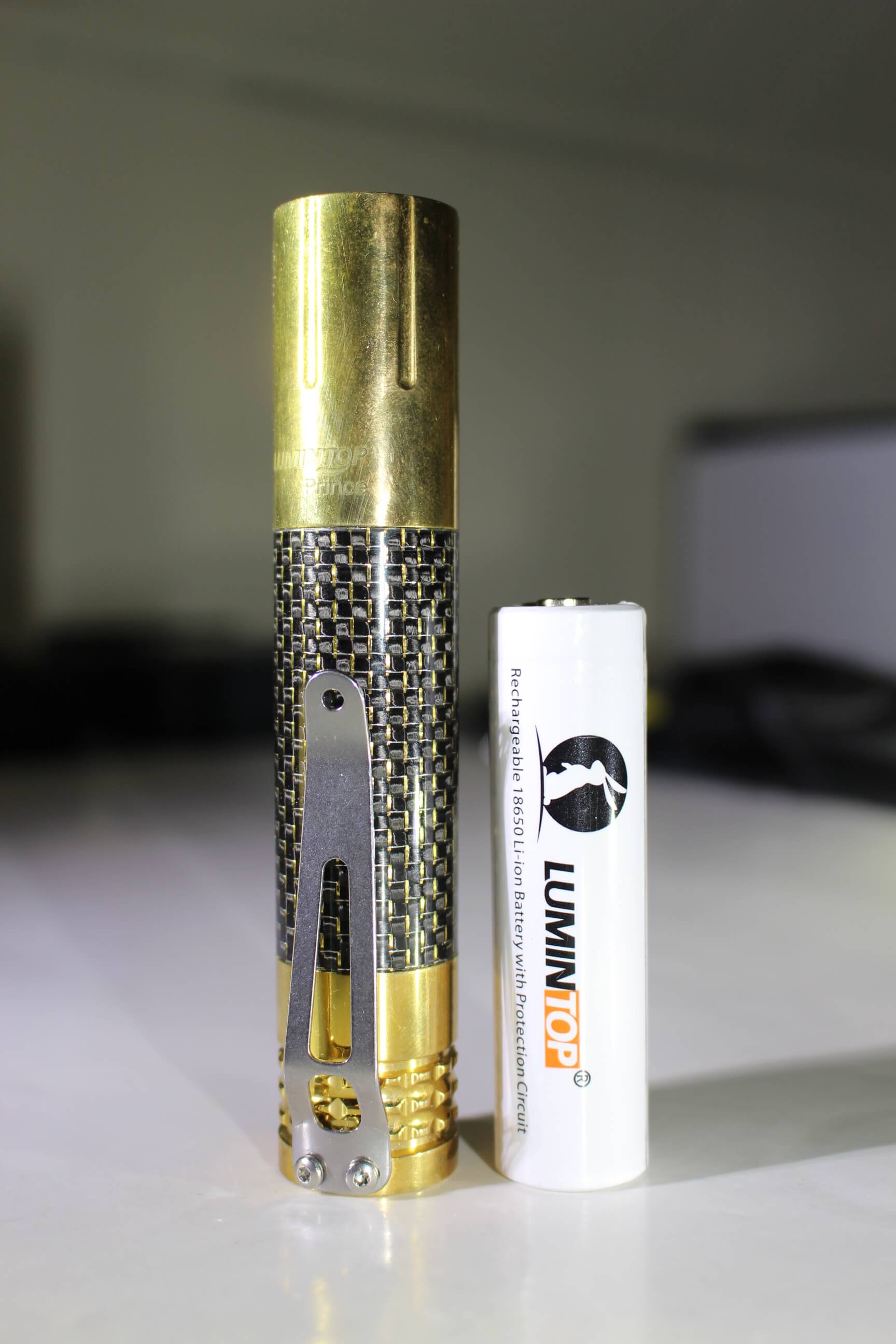 The Prince’s “body” is made from a premium carbon fiber. Lumintop says it’s “lightweight” and although the body itself might be…as a whole, its weight is quite hefty. It’s also resistant to corrosion.