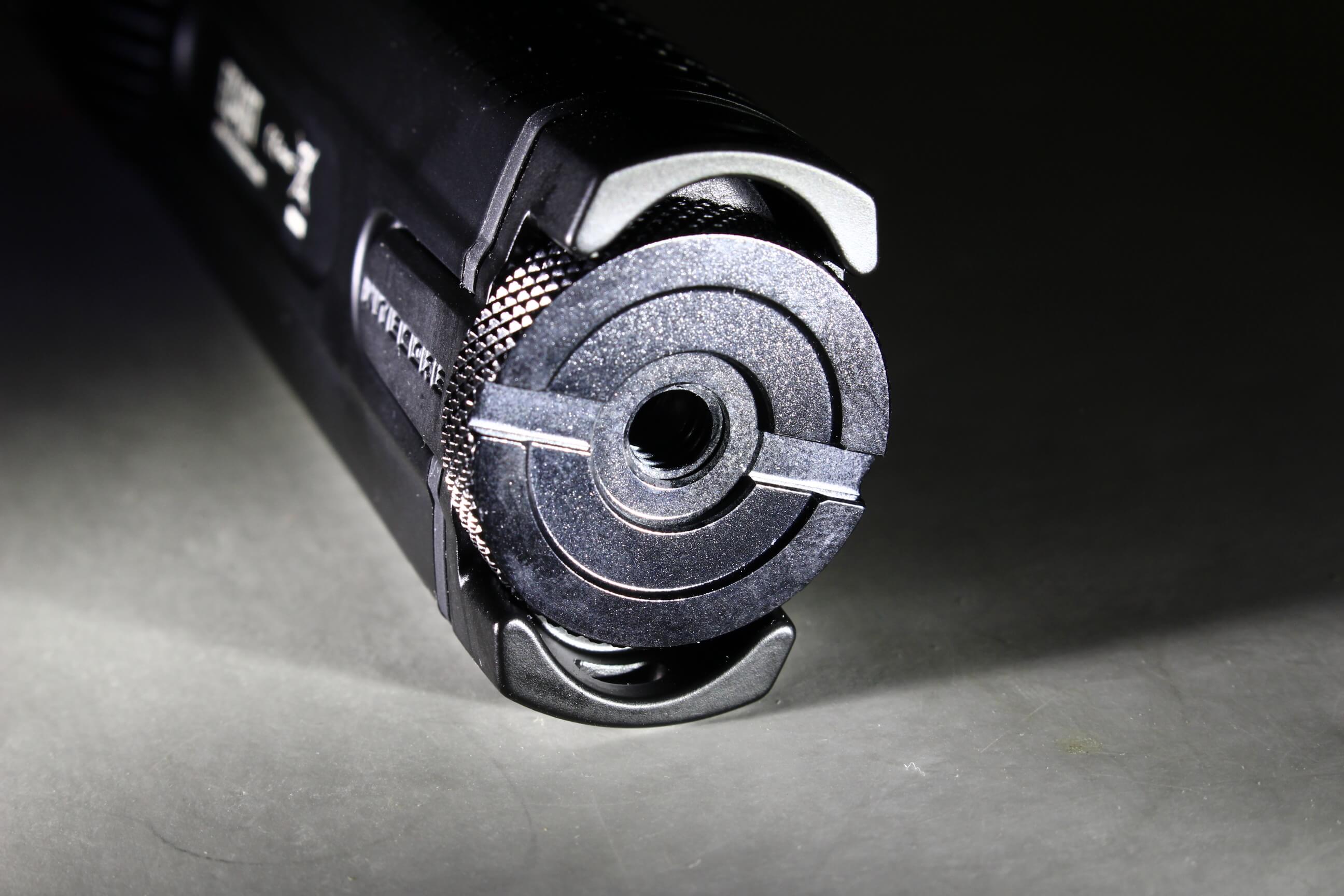 It has a unique locking thumbscrew tailcap, which can also be used as a tripod connector.