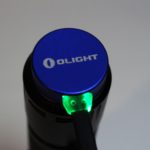 Charging the battery in the Olight M2R is simple. Snap the charging “cap” to the tail of the light, and connect the other end to a USB source. The tiny indicator on the cord of the charging cap will be red. It’ll turn green when the charge is complete.