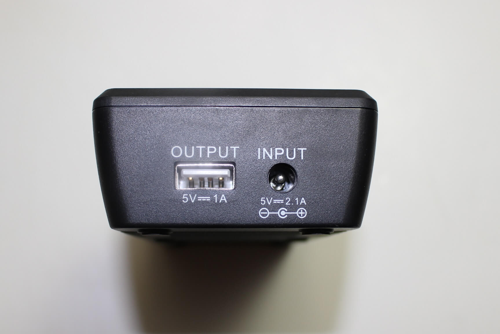 The “output” port on the left can be used to charge a cell phone. A battery needs to be installed in “slot 1” to use this feature.